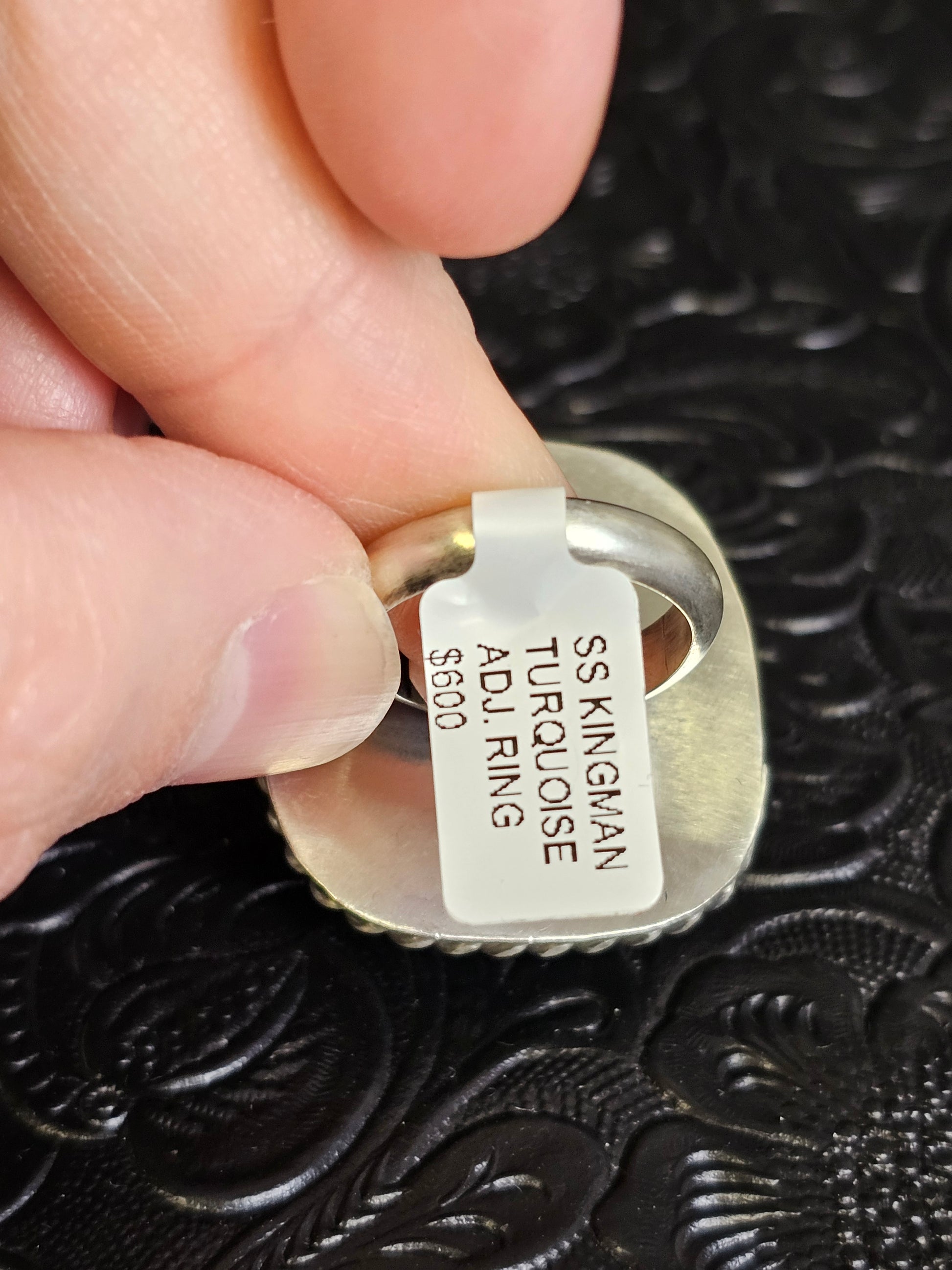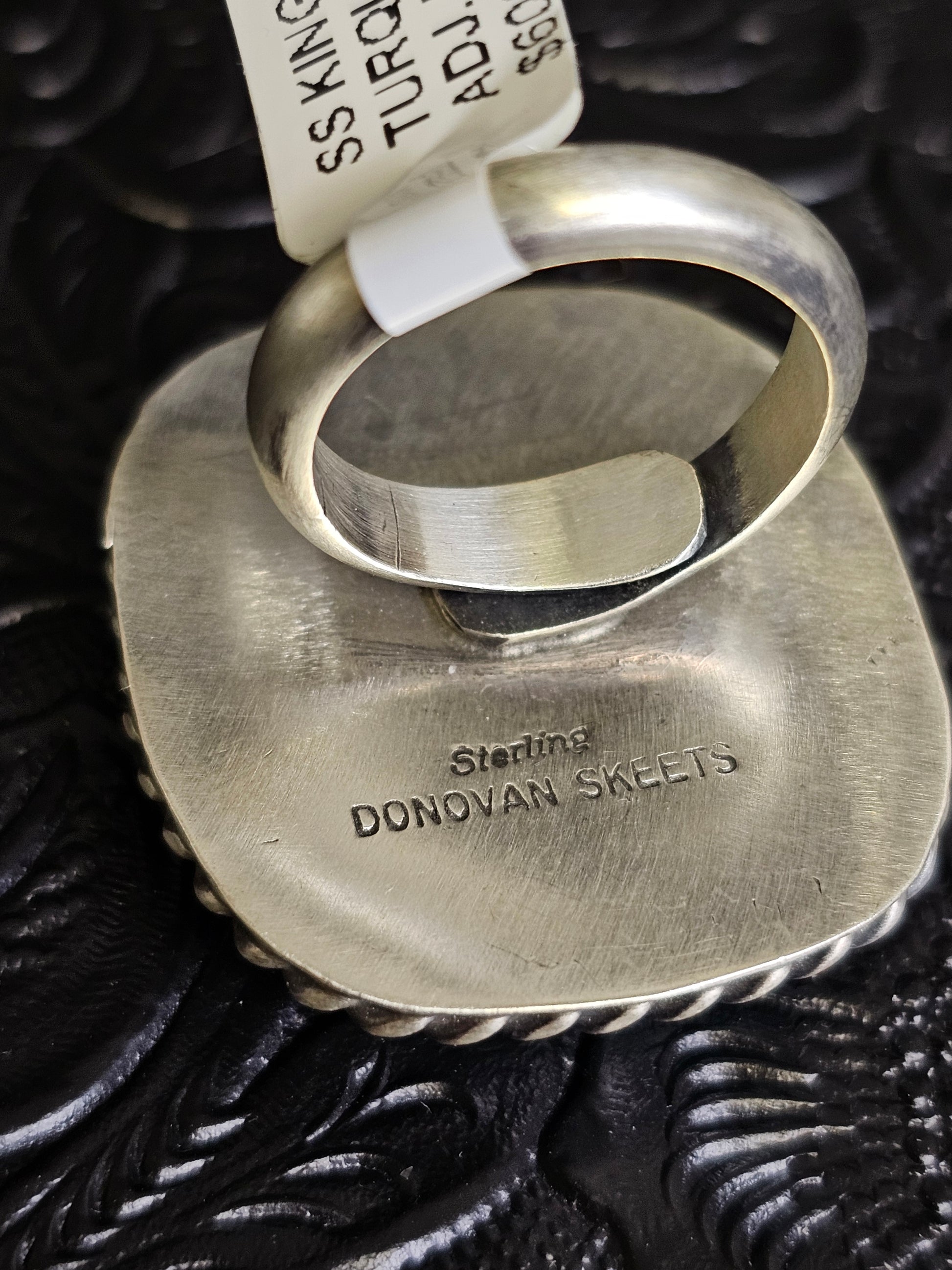 Donovan Skeets Kingman Turquoise Handmade Navajo Square Ring Adjustable