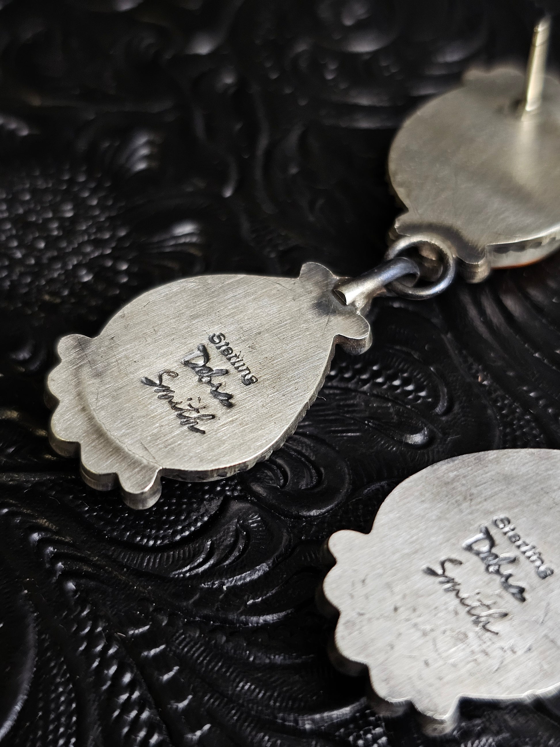 Debra Smith Orange Spiny Oyster Handmade Navajo Earrings
